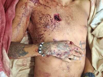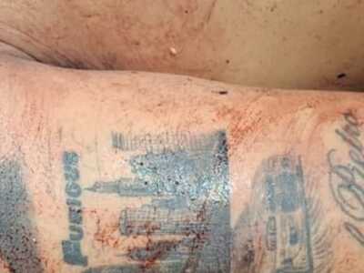 (Look at his Arm) AFTER he got the Visit from the Drug Dealers he Owed Money To
