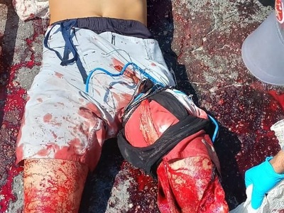 Motorcyclist lost his leg and still alive
