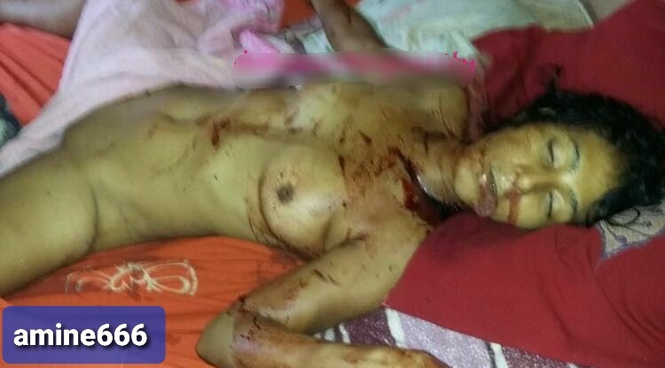 Nude woman killed in her bed by her husband.