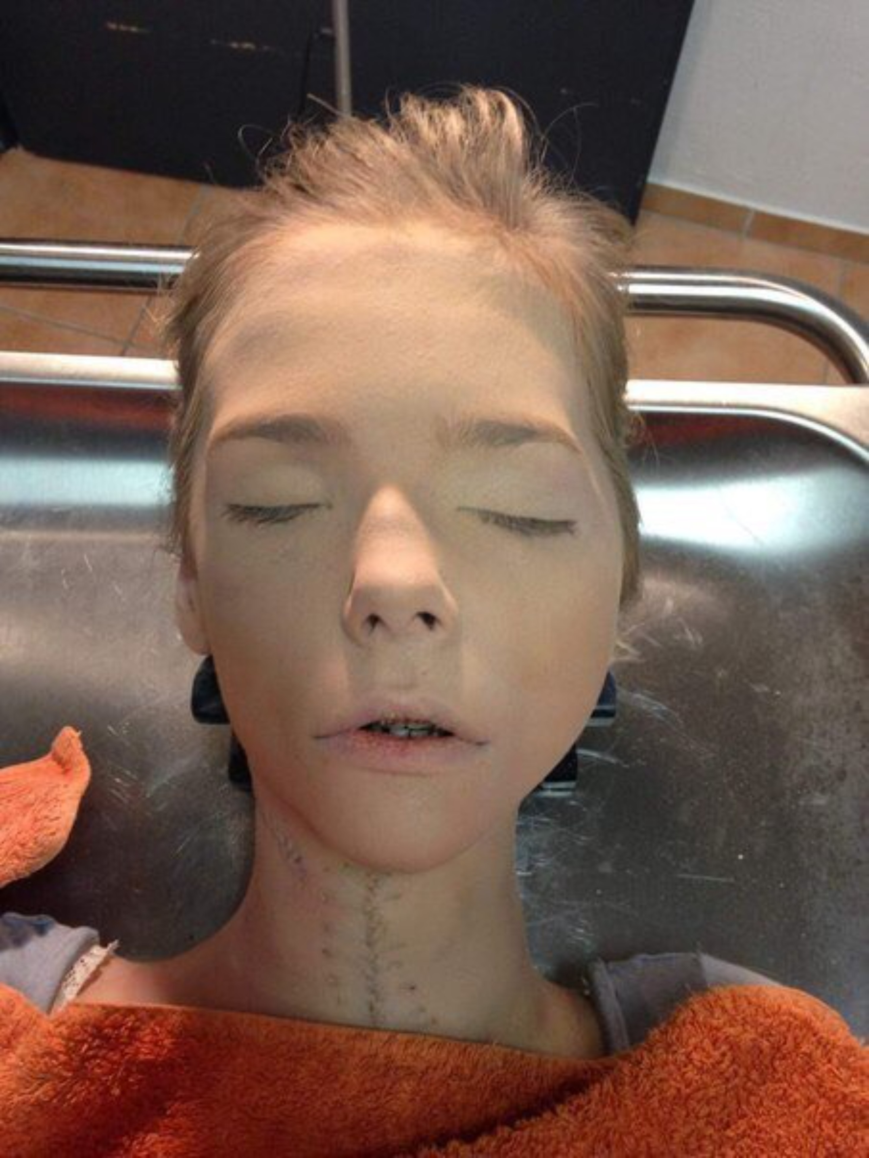 Suicide Entrance and Exit Wound Boy stares at you in the Morgue